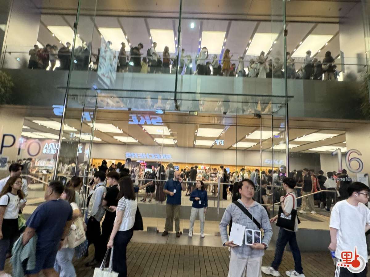 【點新聞報道】Apple iPhone 16、16 Pro及16 Pro Max系列上周發布及預訂,今早(20日)正式開售,本港多家Apple Store門前一早已排長龍,店內亦是人頭湧湧。