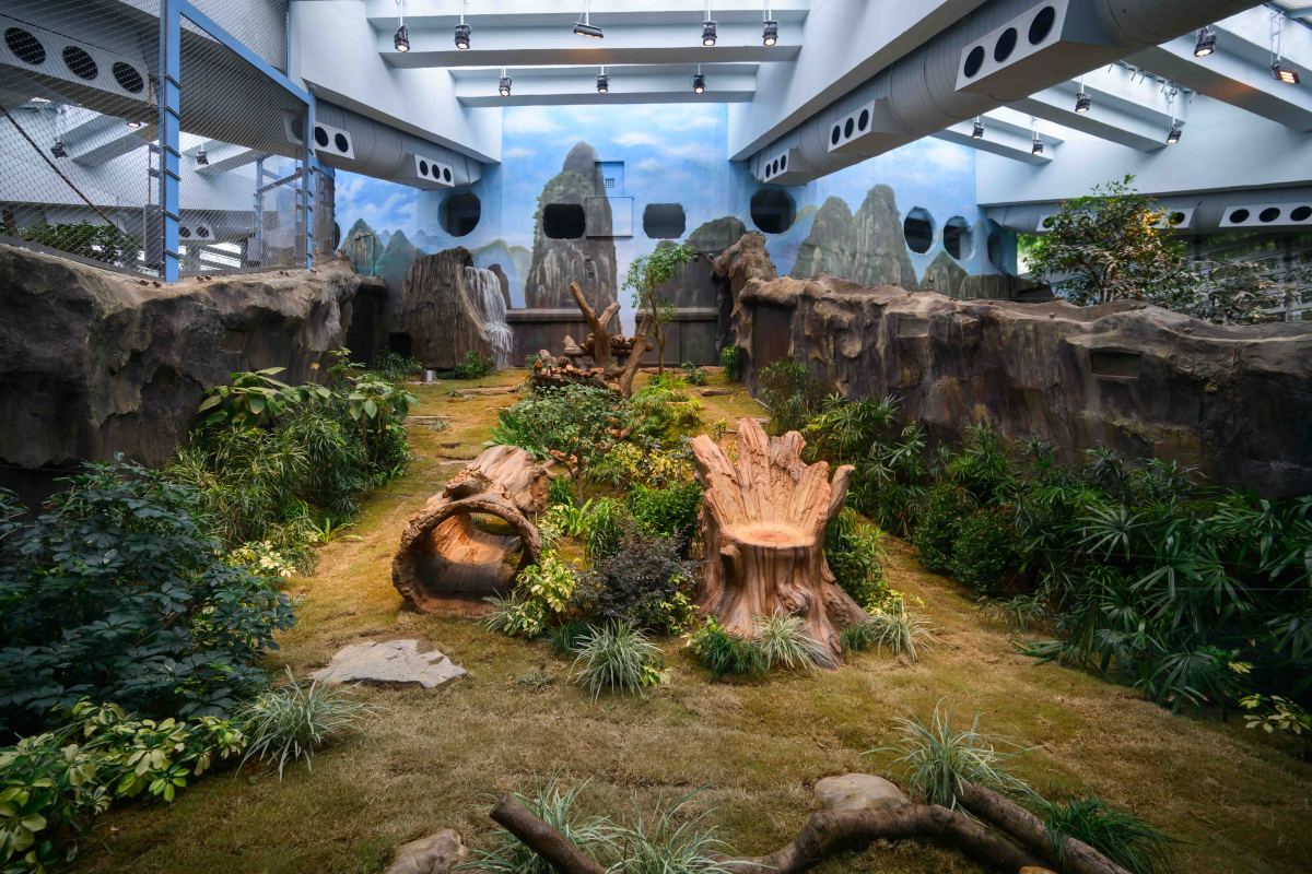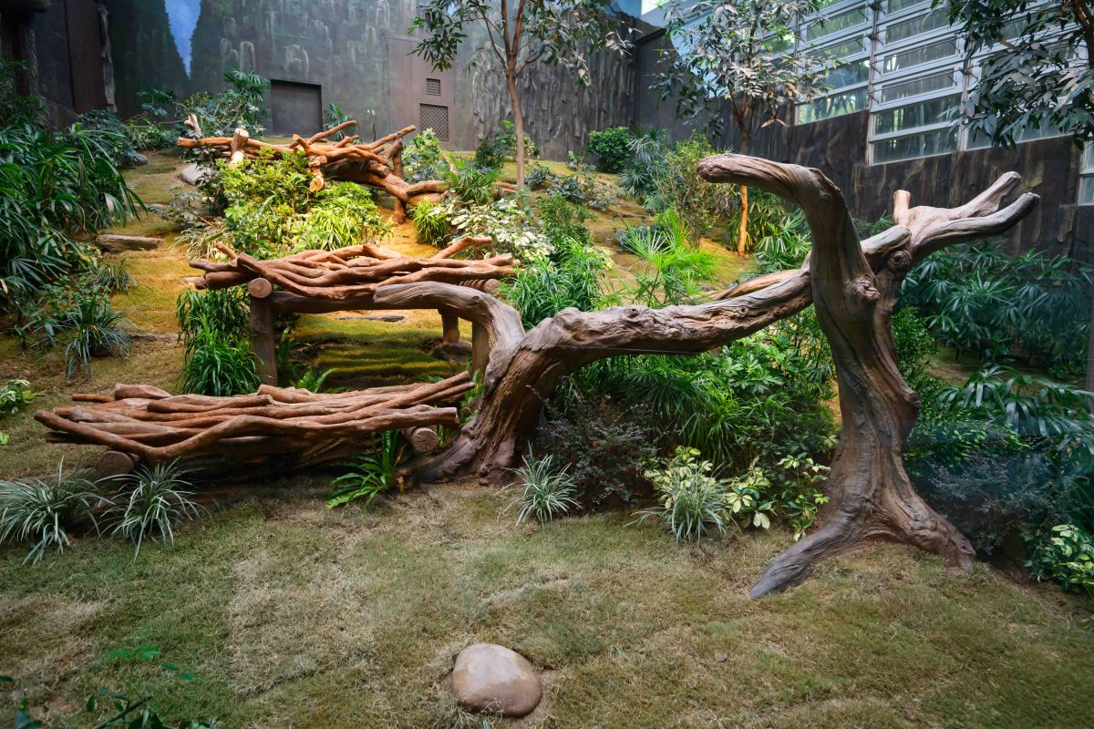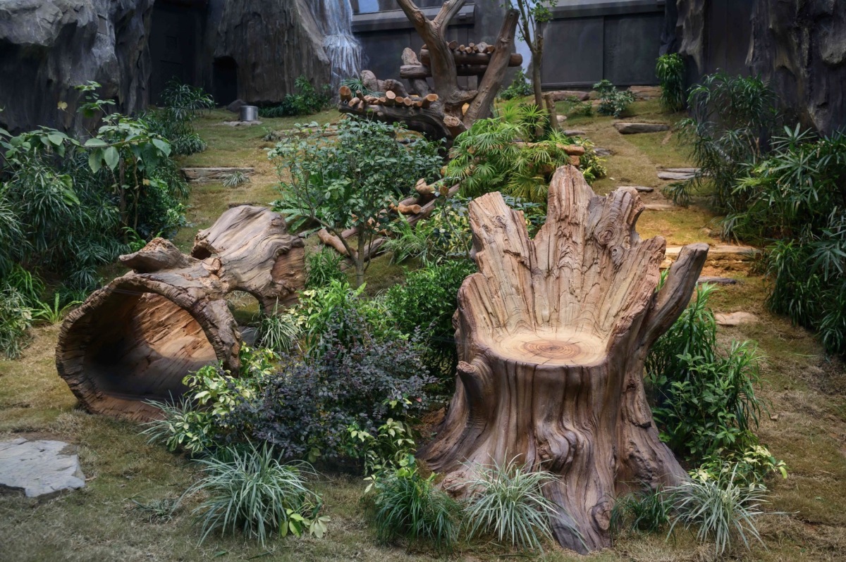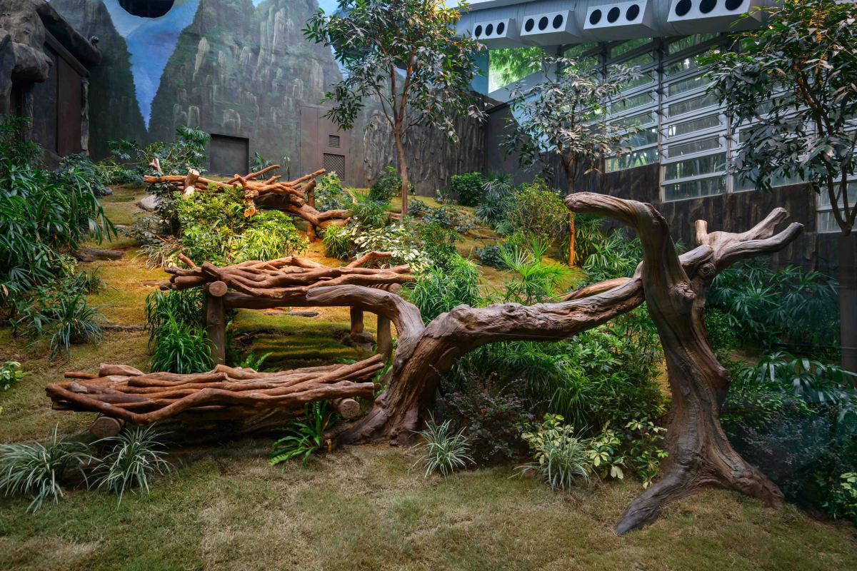 「香港賽馬會四川奇珍館」升級後加入不少令人耳目一新的元素,包括由實木和玻璃纖維增強混凝土製成的全新攀爬架,務求為兩隻新大熊貓提供舒適的活動空間,透過多元化的裝置讓牠們盡展活力。