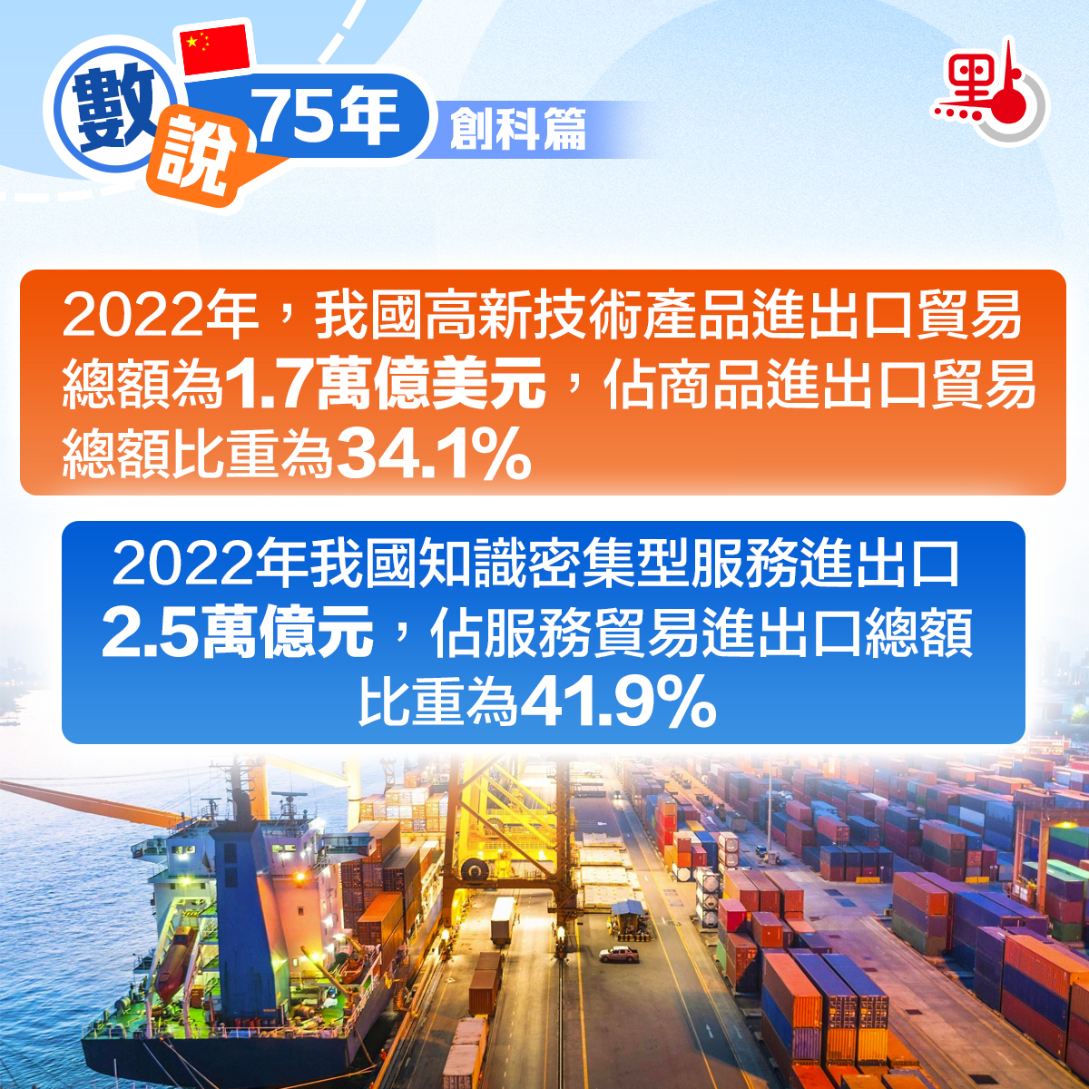 2022年,我國高新技術產品進出口貿易總額為1.7萬億美元,2012年以來年均增長4.5%;佔商品進出口貿易總額比重為34.1%,比2012年提高5.4個百分點。2022年我國知識密集型服務進出口2.5萬億元,2012年以來年均增長9.1%;佔服務貿易進出口總額比重為41.9%,比2012年提高8.3個百分點。