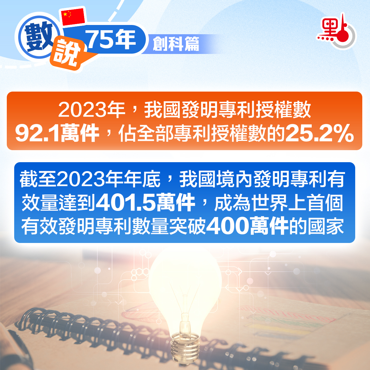 2023年,我國發明專利授權數92.1萬件,佔全部專利授權數的25.2%,比2012年提高7.9個百分點。截至2023年年底,我國境內發明專利有效量達到401.5萬件,成為世界上首個有效發明專利數量突破400萬件的國家。2023年末我國每萬人口高價值發明專利擁有量達到11.8件,較2020年末提高5.5件。