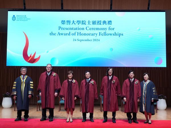 科大校董會主席沈向洋讚揚五位榮譽大學院士的卓越成就,以及對社會的貢獻。他表示,今年科大的榮譽院士不僅在各自的事業上屢創突破,更致力發揮所長,為改善人類福祉作出貢獻,此舉不但為科大的學生樹立典範,更為整個香港、亞洲以至全球具探究精神的人才帶來啟發。