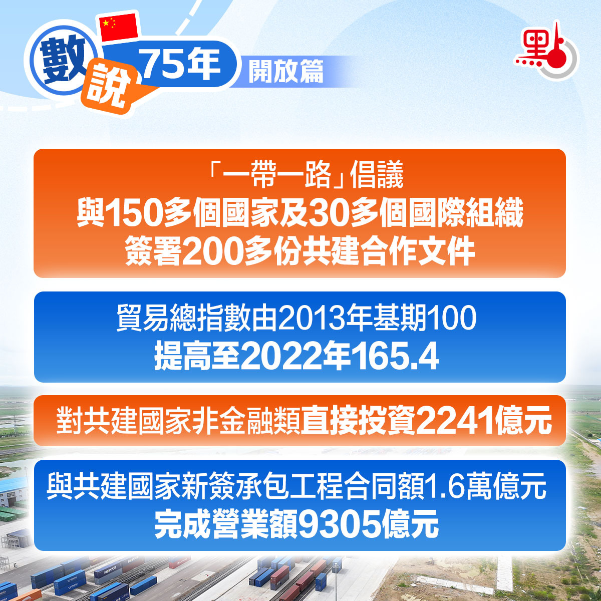「一帶一路」建設成果豐碩。截至2023年底,我國與150多個國家、30多個國際組織簽署了200多份共建「一帶一路」合作文件,貿易總指數由2013年基期的100提高至2022年的165.4。2023年,我國對共建國家非金融類直接投資2241億元,與共建國家新簽承包工程合同額1.6萬億元,完成營業額9305億元。