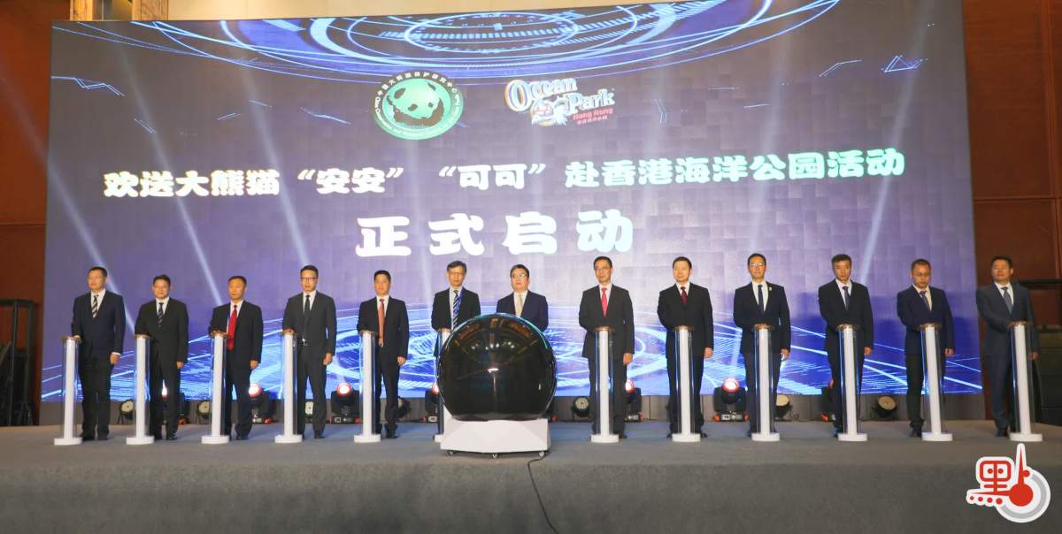 【點新聞報道】9月25日,中國大熊貓保護研究中心(以下簡稱「熊貓中心」)在都江堰為大熊貓「安安」「可可」赴香港海洋公園,舉行隆重的歡送儀式。兩隻大熊貓將於9月26日啟程來港定居海洋公園,加上「盈盈」「樂樂」以及「盈盈」剛剛誕下的一對熊貓幼崽,香港便有了6隻大熊貓。