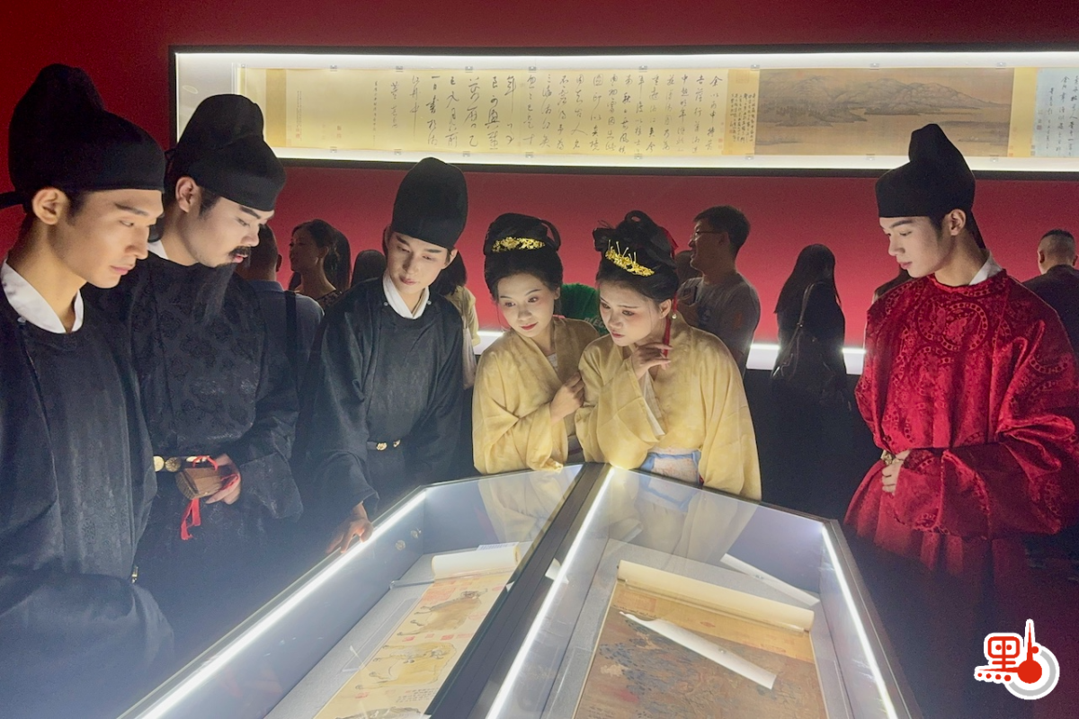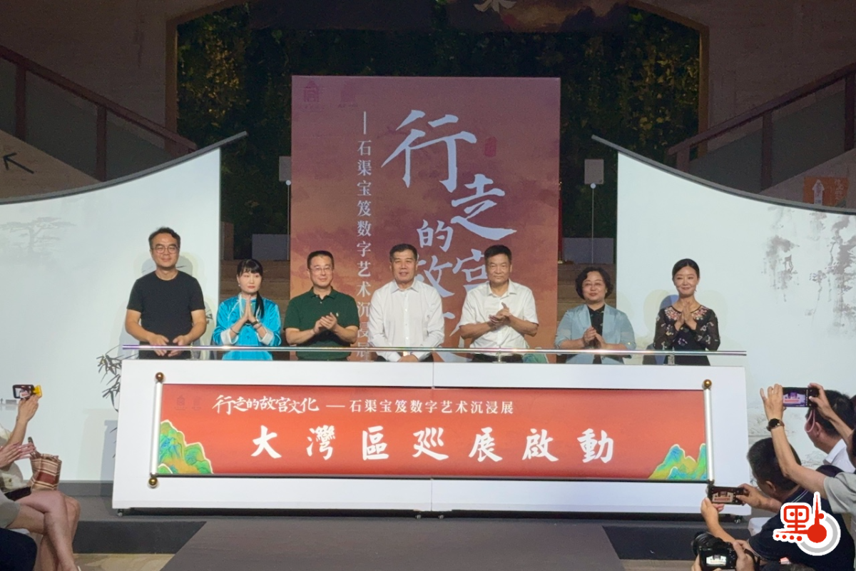 【點新聞報道】琵琶弦動,管樂和鳴,屏風前、床榻上賓主俱凝神欣賞,一幅古色古香的《韓熙載夜宴圖》在廣州人民藝術中心「活」了起來。「行走的故宮文化——石渠寶笈數字沉浸展」近日在廣州正式開展,並啟動了粵港澳大灣區「9+2」城市群巡展。該展覽甄選了故宮《石渠寶笈》內近40幅傳世書畫名作,運用多種前沿數字技術進行解構和重組,給觀眾帶來藝術與科技結合的沉浸式體驗。作為大灣區巡展的首站,廣州站首次增設國潮沉浸體驗場館,融合多種嶺南特色元素,在國慶節到來之際,為灣區觀眾帶來一場文化盛宴。據了解,該展覽在廣州將持續展出3個月,預計明年中赴香港展出。
