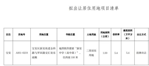 從地塊區位來看,A001-0219地塊位於寶安新安街道,用地面積9997.8平方米,建築面積54000平方米,容積率為5.4,起拍價20.8億元,是一塊由商業用地規劃調整而來的居住用地。從周邊的配套來看,該地塊旁邊有新安中學高中部和海韻學校,對面是騰訊企鵝島,距離寶安地標華僑城歡樂港灣約2公里。