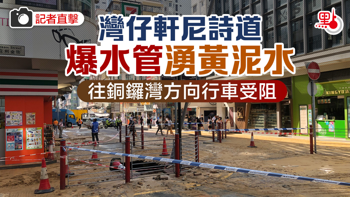 【點新聞報道】灣仔軒尼詩道懷疑有水管爆裂。今日(17日)中午,灣仔軒尼詩道懷疑地底有水管爆裂,上址交通受到影響,往銅鑼灣方向行車受阻。