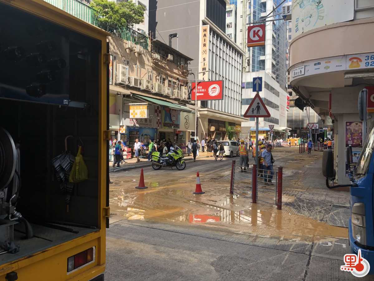 【點新聞報道】佐敦寶靈街懷疑有水管爆裂。今日(27日)下午2時許,佐敦寶靈街與白加士街交界疑爆水管,佐敦C出口暫時封閉,現場工人搶修中。