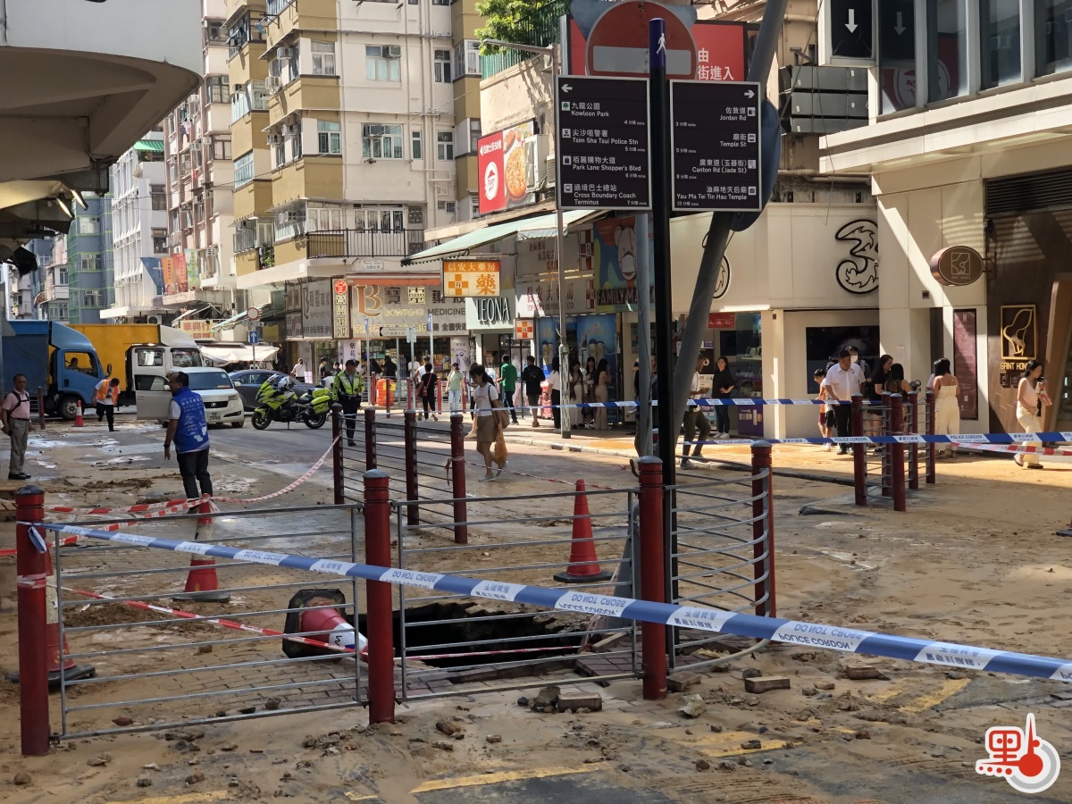 運輸署宣布,因水管爆裂,車輛禁止由白加士街右轉入寶靈街及由柯士甸道左轉入庇利金街。同時,佐敦站C2出入口暫時關閉,請使用其他出入口。現時上址交通繁忙。