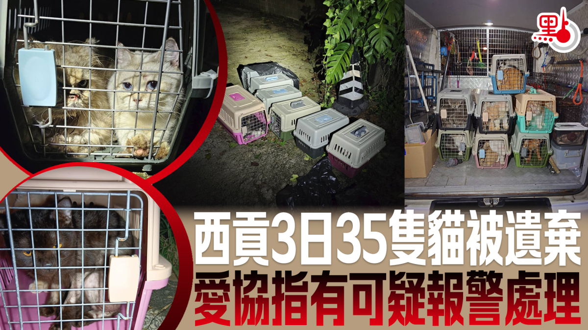 愛護動物協會表示,在9月24至26日連續3晚均接到匿名電話,指西貢有貓隻被遺棄,一共發現35隻貓,包括唐貓、英國短毛貓、蘇格蘭摺耳貓、金吉拉貓、豹貓、暹羅貓、阿比西尼亞貓、德文捲毛貓、緬因貓等,牠們被困在飛機籠,放置於路邊,發出哀鳴。愛協認為個案非常有可疑,已經報警及通知漁護署,要求進一步調查。