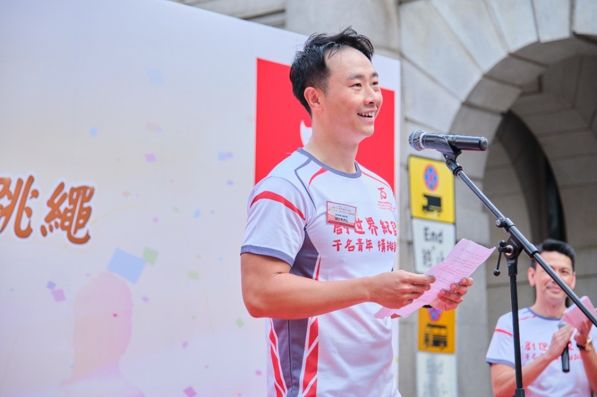 民政及青年事務局副局長梁宏正出席並見證千名青年橫排跳繩成功創世界紀錄的盛況。梁宏正致辭表示,這次千名青年橫排跳繩國慶活動也是香港青年節的活動之一,感謝香港島青年聯會和一眾青年團體及社會各界對特區政府青年工作的支持。千名青年橫排跳繩創聯合國可持續發展目標(SDG)世界紀錄具有創新性,對鼓勵青年開展體育鍛煉、參與社會服務,貢獻香港發展具有積極意義。呼籲廣大青年朋友積極參與香港青年節系列活動,配合特區政府將青年工作做得更精彩。
