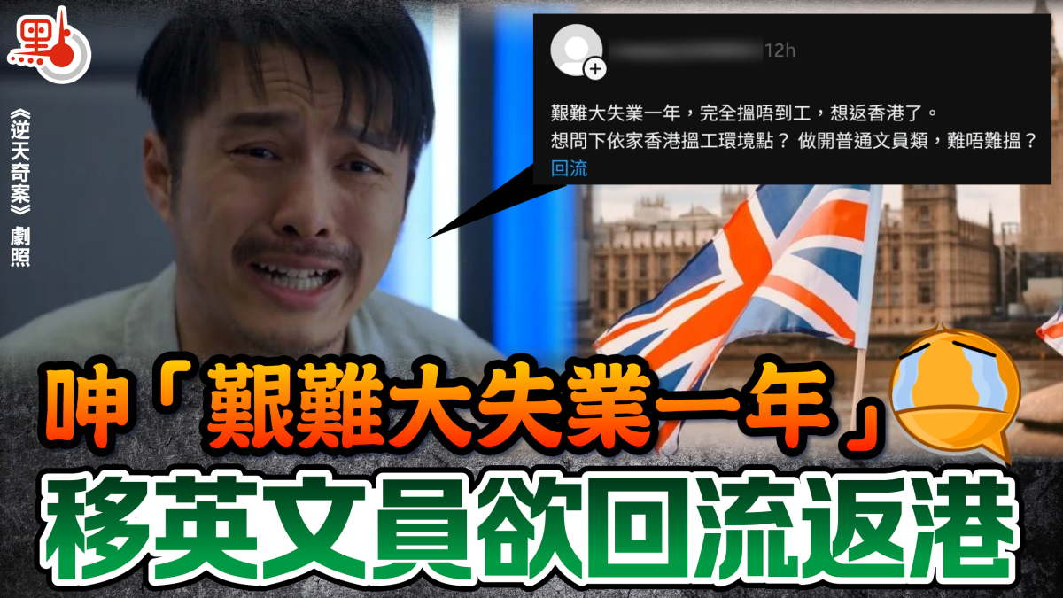 社交平台上一個移英港人群組近日有成員發帖,大呻「艱難大失業一年,完全搵唔到工,想返香港了。」但又擔心返港後搵唔工作,「想問下依家香港搵工環境點?做開普通文員類,難唔難搵?」
