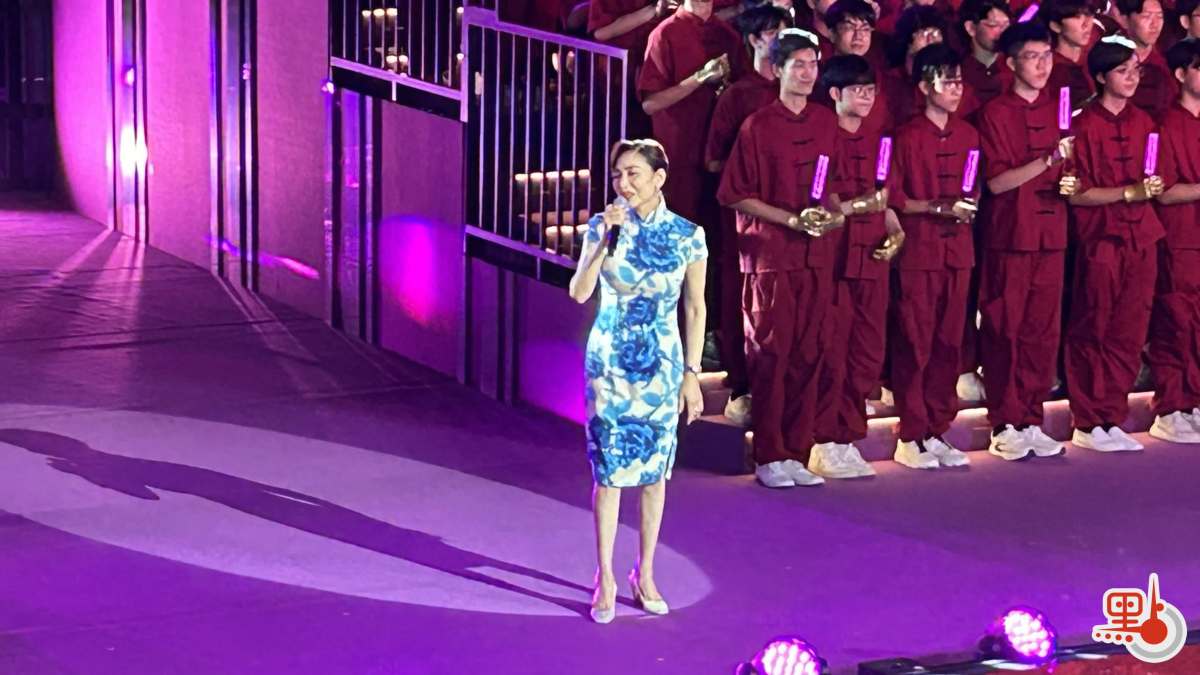「愛國主義教育工作小組」傳媒宣傳分組委員鄺美雲現場演唱愛國主義教育主題曲《我們的家》。