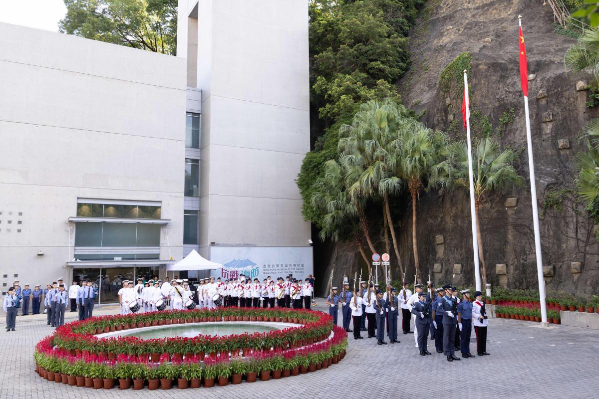 【點新聞報道】為慶祝中華人民共和國成立75周年,康樂及文化事務署(康文署)與香港少年領袖團、香港海事青年團及香港航空青年團今日(10月1日)於香港抗戰及海防博物館合辦國慶日升旗典禮暨步操表演,是博物館今年9月3日改設後首個國慶日升旗典禮。