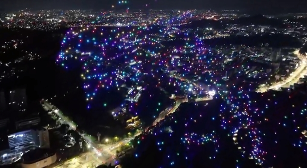 龍崗區與福田區的無人機編隊表演正常演出,「文旅深圳」今晚(10月1日)9點直播指出,受氣象影響,龍華、羅湖、大鵬三個區域的無人機編隊表演尚在評估起飛條件。約晚9點10分,羅湖區域的無人機表演正常起飛,龍華區域的表演也正常進行。截至目前,大鵬區域的無人機也已升空。