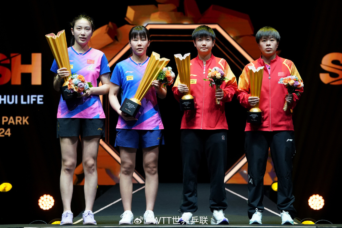 陳幸同/錢天一以3-1戰勝對手孫穎莎/王藝迪,收穫中國大滿貫女雙冠軍,四局比分分別是:12-10、12-10、3-11、11-7。