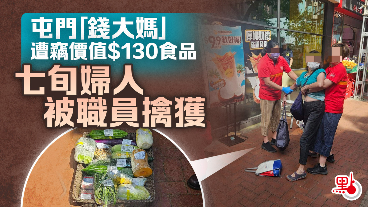 【點新聞報道】今日(6日),有網友在facebook發帖,指屯門「錢大媽」超市遭遇行竊,疑犯是一名72歲的老婦。她一共偷了價值130元的食品,包括蔬菜和肉類,被發現後,超市職員將她當場擒獲。