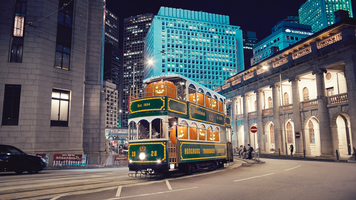 旅發局特設的「哈囉威香港」發光主題電車,將由本周五(10月11日)起換上一身炫酷的應節新裝,日與夜閃耀地穿梭港島的大街小巷,市民及旅客不妨捕捉並登上主題電車,漫遊城市。