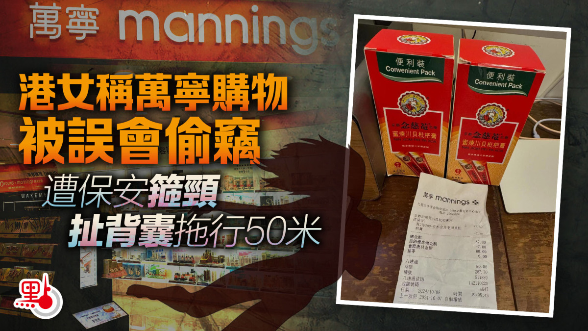 【點新聞報道】萬寧購物竟被保安暴力「執法」?近日,有港女在Threads上發帖稱,自己在位於尖沙咀的萬寧購物時,因被誤會偷竊店內物品,竟被便衣保安箍住脖頸和扯住背囊,拖行了約50米。事後該港女憤怒發帖,曝光該店行徑,並稱已向客戶服務部投訴,但暫未收到回覆。該帖引起廣泛熱議,網友們力撐該女子,不少人甚至湧到萬寧官方facebook專頁留言,指責萬寧做法,要求他們道歉。