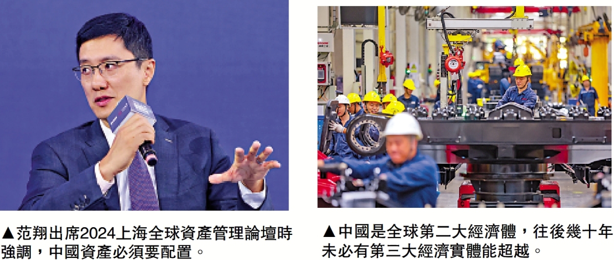 高盛對於中國資產前景持續看好。高盛中國聯席主管、高盛(中國)證券董事長范翔昨日出席2024上海全球資產管理論壇時表示,中國已是全球第二大經濟體,相信往後的幾十年也看不到任何第三大經濟實體能超越,因為中國是必須要配置的資產,「不管是從投資的角度講,還是全球客戶發展自身市場的角度講,中國都是必須來的地方。」
