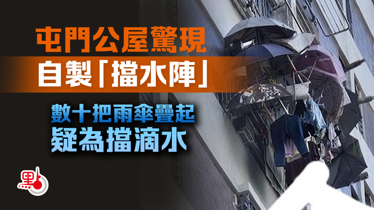 【點新聞報道】為擋冷氣機滴水,屯門公屋竟有市民用雨傘自製「擋水陣」?有網民在facebook群組發帖,指屯門蝴蝶邨公屋,有一戶在室外晾衣架上堆疊了層層雨傘,遠看似一處複雜的機關,十分奇怪。更有網民戲言這是「辟邪風水陣」。