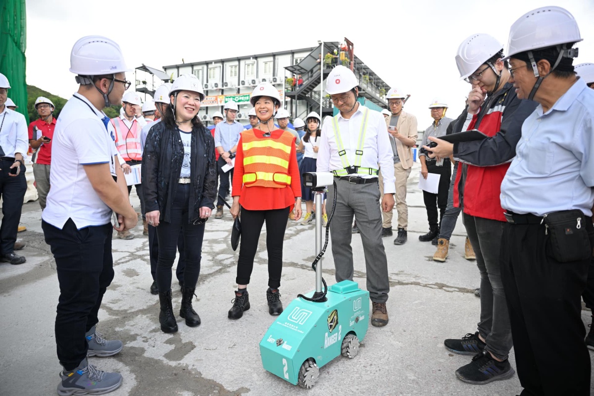 何永賢表示,視察時承建商展示了專門為MiC吊運而研發的安全機械人Safety Rangers,以監察着整個操作的安全,並會就偵測到的異常情況,發出警報提示工友,與其他安全智慧工地系統(4S)的方案一併作為重要的安全預防措施。另外,她們也視察了MiC的吊運與安裝、參觀了示範單位,並與現場的建築機械人互動。