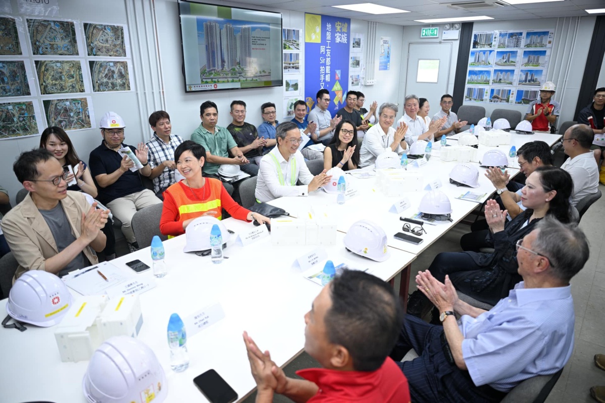 【點新聞報道】房屋局局長何永賢今日(11日)於社交媒體發文指出,早前到古洞北第19區1A及1B公營房屋發展計劃的地盤視察,見到該地盤使用共12950個MiC(組裝合成建築法)組件,她表示見到承建商「積極擁抱科技」作安全預防措施,對此感到高興。