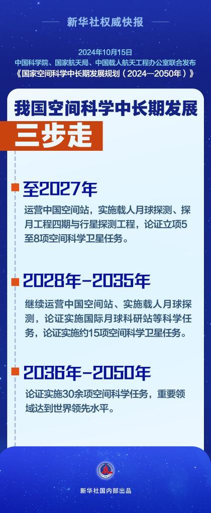 【點新聞報道】中國科學院、國家航天局、中國載人航天工程辦公室今日(15日)聯合發布《國家空間科學中長期發展規劃(2024—2050年)》,作為當前和今後一個時期指導我國空間科學任務部署、開展空間科學研究的依據。