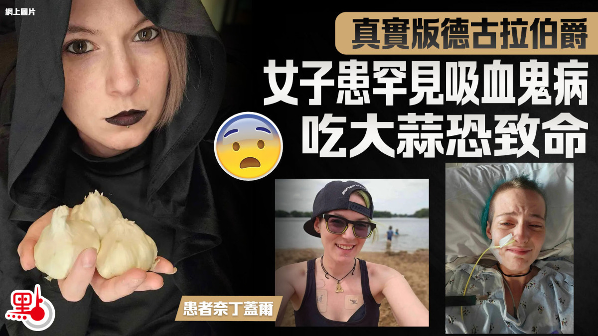 【點新聞報道】美國明尼蘇達州一名女子罹患罕見的「吸血鬼病」,如果她攝入大蒜甚至可能致命。她所患的名為「急性間歇性紫質症」(acute intermittent porphyria)的罕見代謝失調症,這種疾病會引發疼痛、偏頭痛、便秘及連續數天的嘔吐等症狀,甚至在吃下大蒜後可能會致命,與傳說中吸血鬼極為相似。