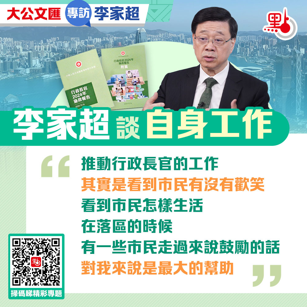 李家超這份施政藍圖如何落實?他如何闡述自己的施政理念?他分享了上任以來哪些點滴感悟?請留意10月19日的大公報、香港文匯報,以及大公文匯網、點新聞網的相關報道。