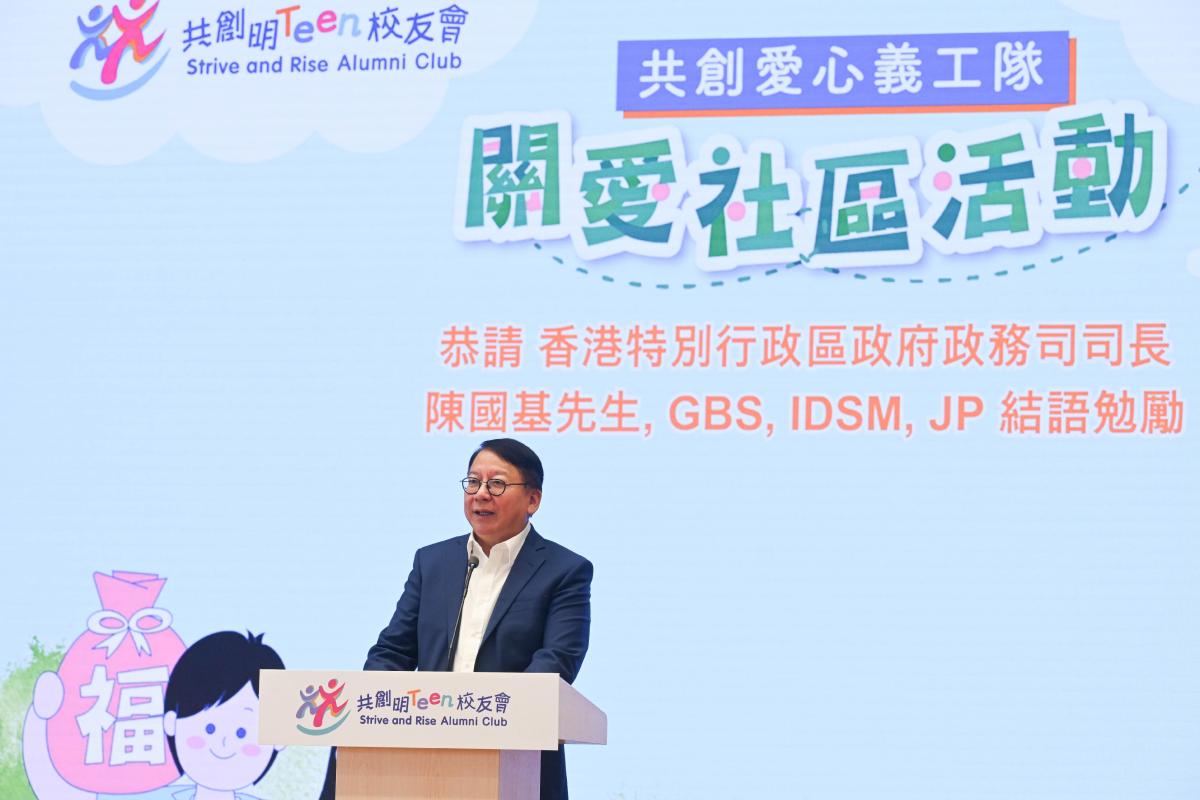 【點新聞報道】「共創明『Teen』校友會」青年委員會舉辦的「共創愛心義工隊」關愛社區活動今日(19日)展開。政務司司長陳國基出席活動並致辭,他強調,希望各位學員進入大學或工作後,亦要成為友師,做到薪火相傳。