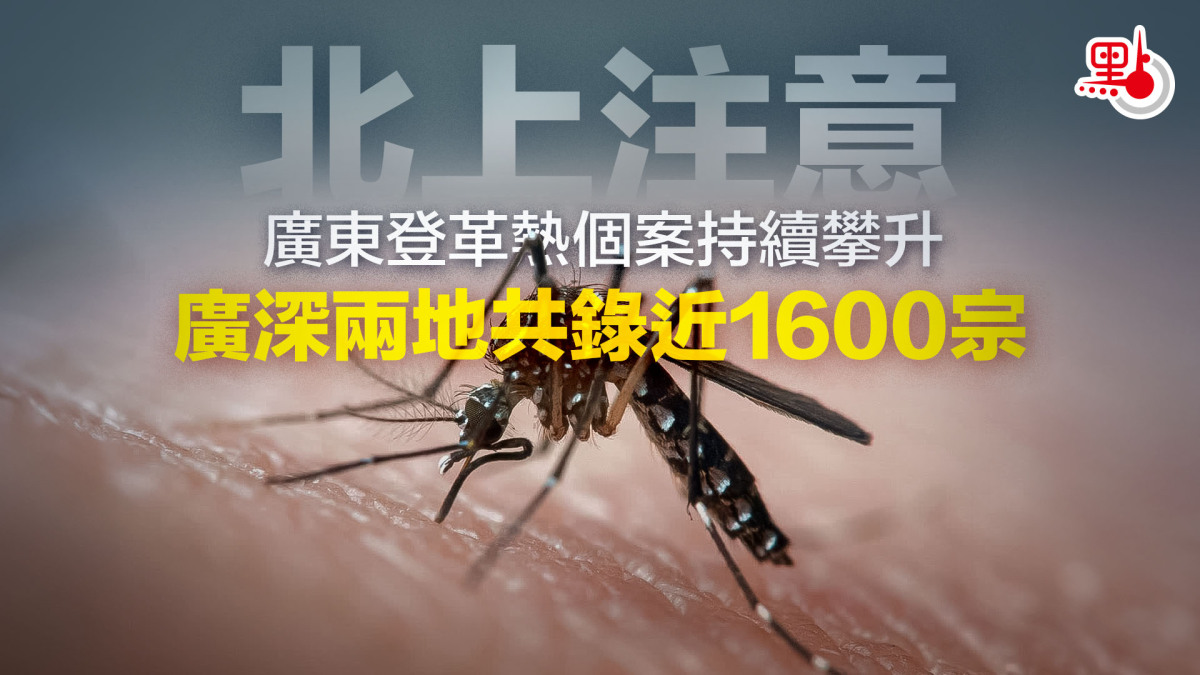 【點新聞報道】廣東省的登革熱個案持續攀升。當中,本地個案最多的依次為廣州、深圳、江門,近一個月來累計個案分別達1121宗、473宗、385宗,而廣深兩地合計有近1600宗。