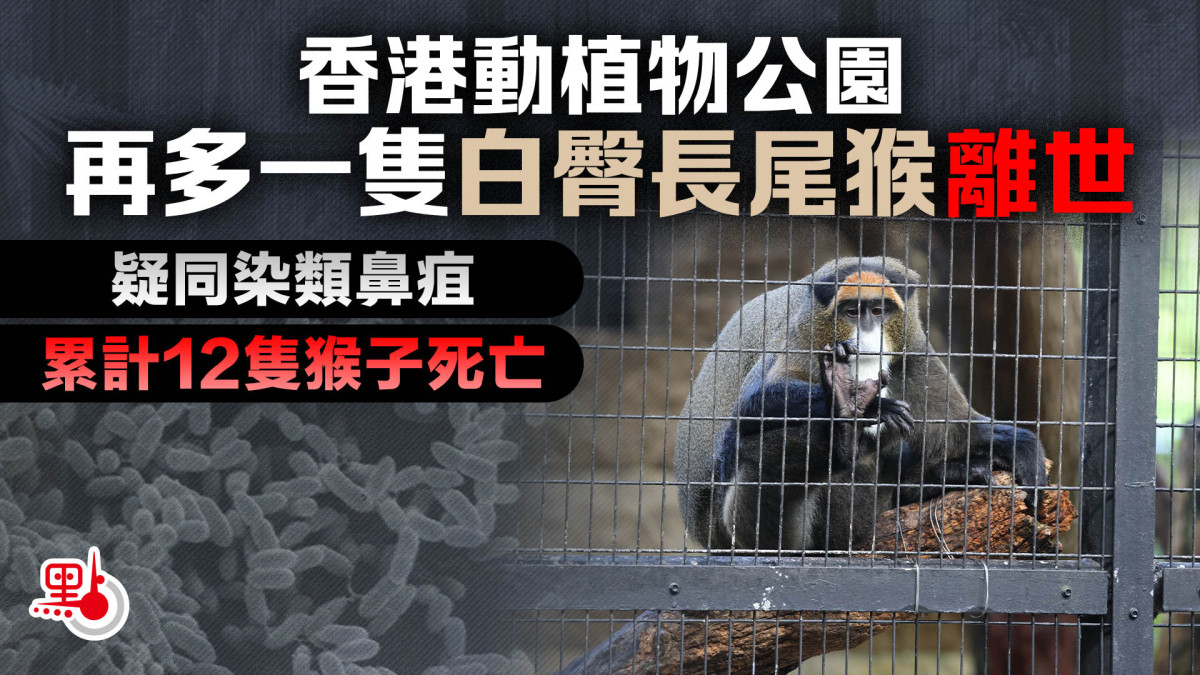 【點新聞報道】康文署今日(22日)晚間公布,香港動植物公園一隻自10月14日起接受隔離治療的白臀長尾猴今日死亡,發現其器官組織亦有病變。香港動植物公園由10月13日至今共12隻猴子死亡。