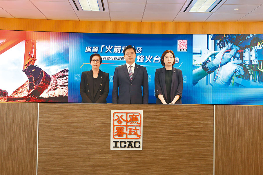廉署執行處總調查主任麥暢頴昨日(23日)公布行動成果時表示,廉署於早前接獲投訴,指稱一名挖泥機操作員涉嫌串謀兩間勞工處認可訓練課程營辦機構職員,以貪污手段協助沒有操作挖泥機經驗人士非法取得相關專業證書,並懷疑在申請過程中涉及造假,違反《防止賄賂條例》及其他相關法例。
