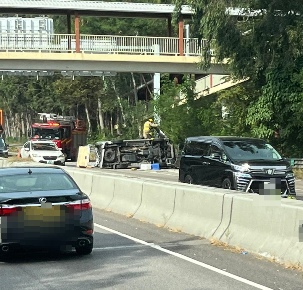 事發時車CAM片段曝光,可見當時客貨車沿中線往上水方向行駛,至石湖圍時一輛私家車從快線靠近,疑切線時撞向客貨車。客貨車隨即失控,越過中線撞向路壆,塵土飛揚,最終側翻橫亘路中。涉事私家車則駛前,在慢線停下。