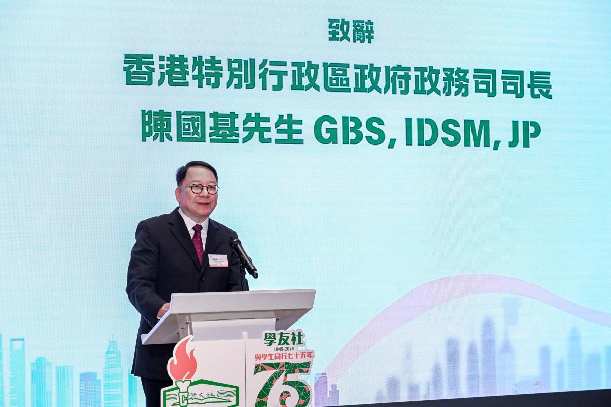 【點新聞報道】自1949年成立的學友社今年踏入75周年,並於今晚(25日)舉辦慶祝中華人民共和國成立75周年暨學友社社慶75周年晚宴。政務司司長陳國基出席並致辭時表示,政府會繼續透過多元化的措施和計劃,為青年人提供全面的支援,鼓勵他們全人發展。