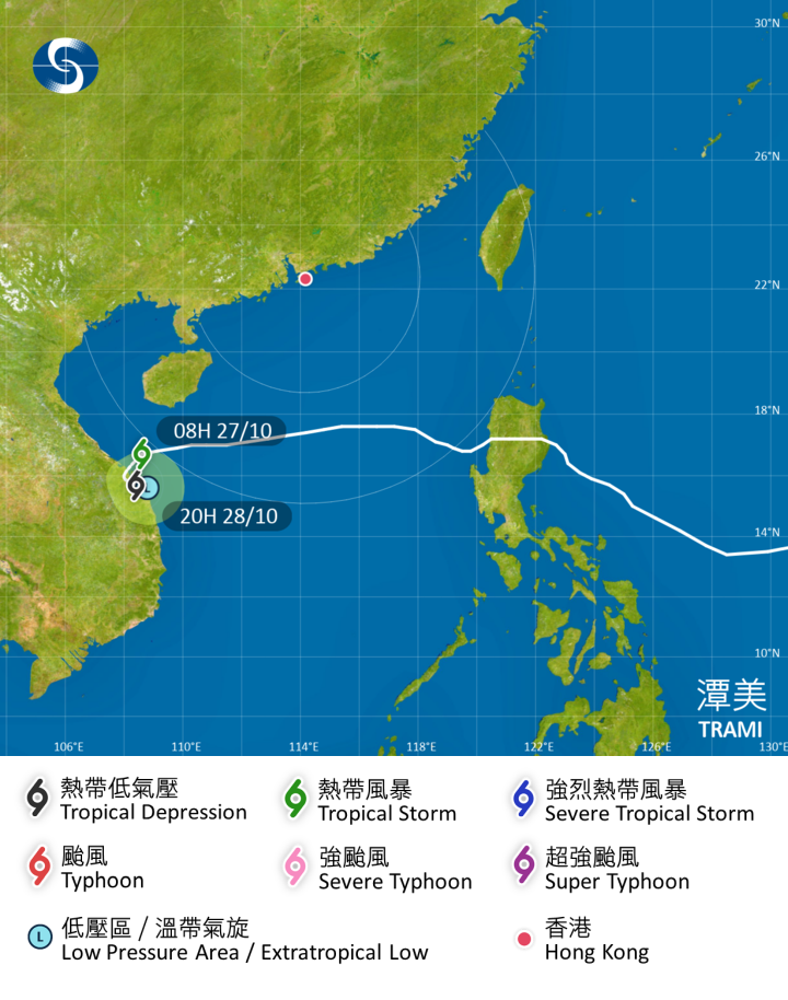 【點新聞報道】天文台已取消熱帶氣旋「譚美」警告信號。據天文台預計,「潭美」會在今明兩日於越南中部沿岸徘徊並減弱,其後有機會轉向偏東方向再次橫過南海中部。