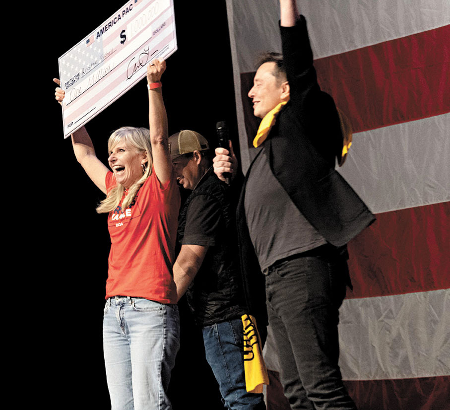 馬斯克在今屆大選表態支持共和黨總統候選人特朗普,「每日派100萬美元」活動被指為特朗普助選,因而引發爭議。民主黨籍的賓夕法尼亞州州長夏皮羅曾公開批評這是「黑金」流入選舉,表明執法機構應介入調查。