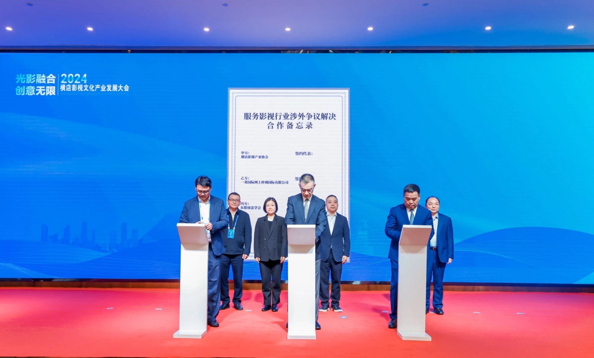 【點新聞報道】2024橫店影視文化產業發展大會28日在浙江東陽橫店舉行。浙江省東陽市法學會、橫店影視產業協會與香港一邦國際網上仲調中心簽訂「服務影視行業涉外爭議解決合作備忘錄」,攜手為影視行業相關的跨境糾紛提供解決方案。