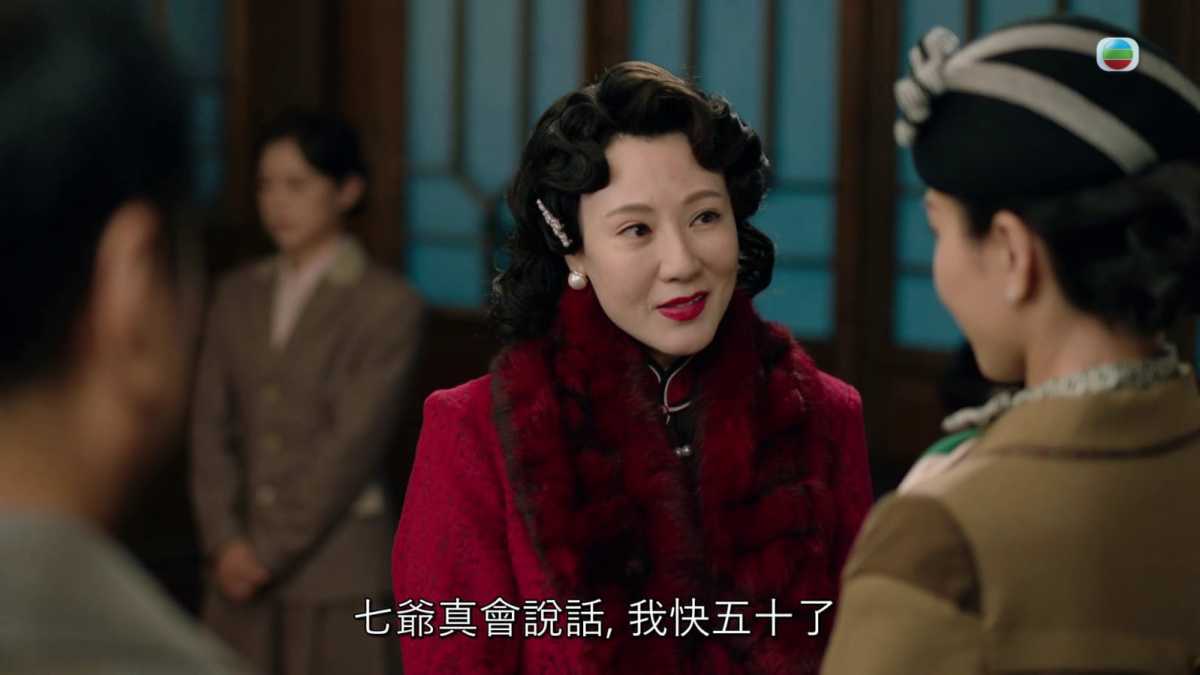 出名保養得宜、現年52歲的康華,昨晚出場時先以一雙修長美腿入鏡,甚有氣派,而為角色梳了一頭古典波浪頭的她,先後以兩大貴氣造型亮相,分別是暗紅色絨毛領大衣,及黑金長旗袍配毛毛披肩,眉頭眼額甚是霸氣之餘還夾雜別具女人味的嫵媚,難怪獲網民再度認證是美魔女。昨晚講數場口之所以好看,是手頭上物業大受歡迎的大紅姐原本佔盡上風,更乘機搞小動作坐地起價;可惜七爺不是省油的燈,表面豪爽地大幅加價令大紅姐心猿意馬,更藏不住喜悅露出市儈樣,但實則是要利誘大紅姐親手打斷米路。