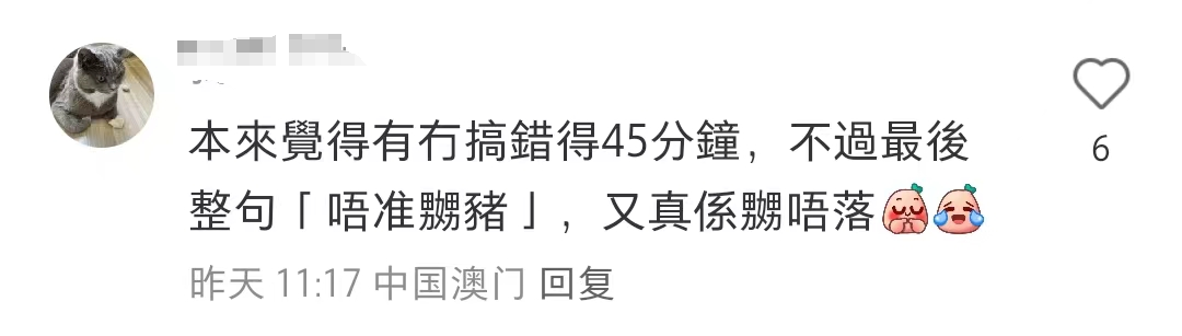 許多內地網友感到迷惑了:「搭枱」?「唔准嬲豬」?這啥意思?