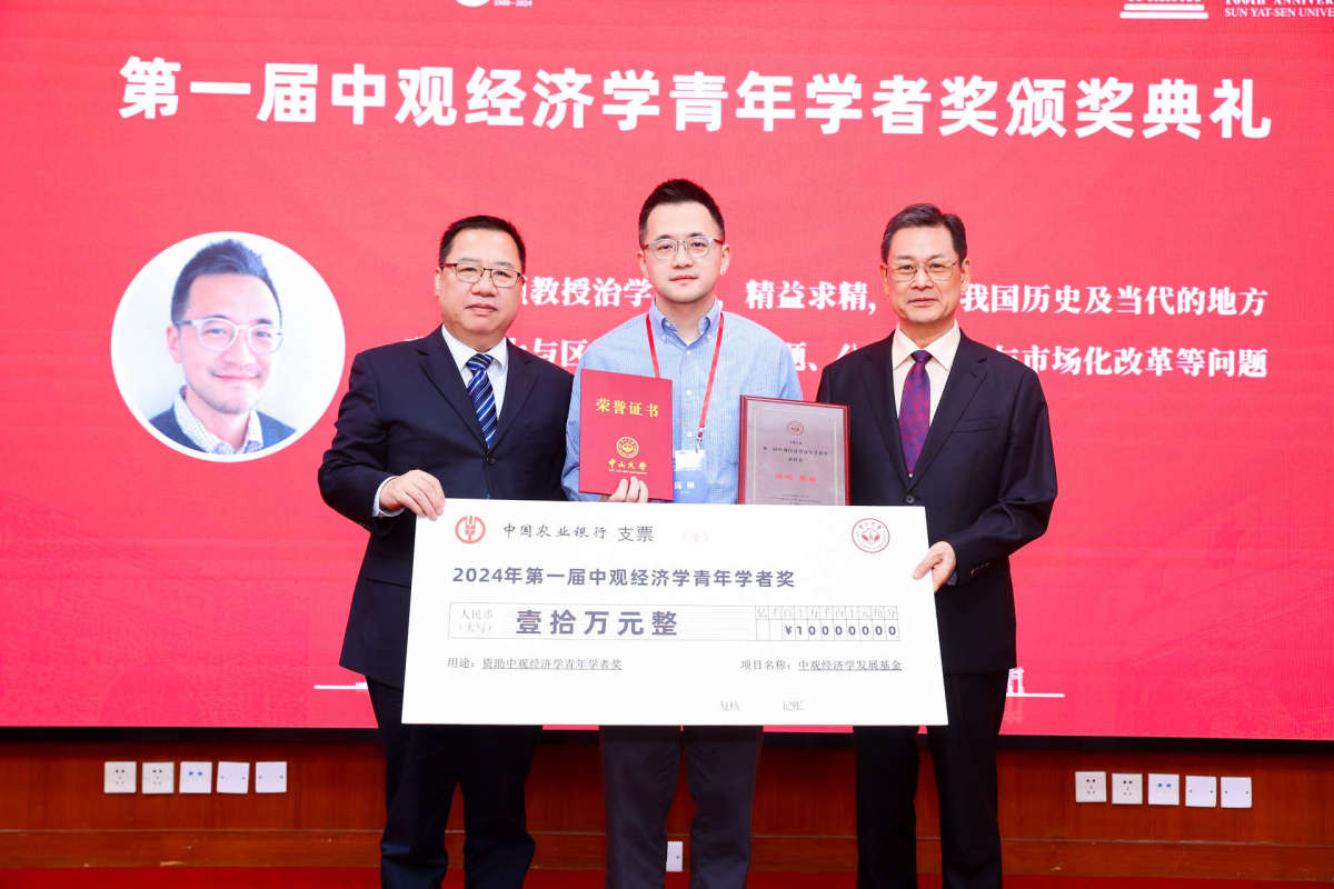 本次論壇由廣東省社會科學界聯合會主辦,中山大學嶺南學院、中山大學中觀經濟學研究院及重點實驗室協辦。現場還頒發了首屆「中觀經濟學青年學者獎」,該獎項每年評選1至2名獲獎者,每位獲獎者將在評選當年獲得10萬元人民幣資助,並為其博士生團隊提供次年5萬元人民幣的研究資助,推動青年學者在區域經濟和地方政府治理創新領域實現突破。