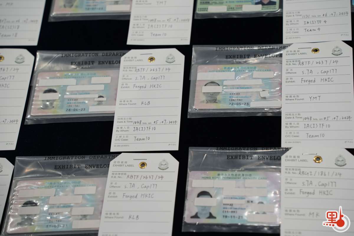 根據調查顯示,整個偽證集團在香港和內地已經運作超過6個月,牽涉款項金額超過港幣1300萬。根據深入情報分析,今年7月調查人員成功鎖定一批在內地犯罪集團速遞來香港的假身份證,在速遞公司的配合下,調查人員在香港的包裹分發站搜集這批假身份證並即時做出收網行動。行動當日調查人員喬裝成為速遞員,在全港各區不同目標地點同時間,進行管控快遞包裹行動,並對接收包裹的骨幹成員即時作出拘捕,並成功鎖定全香港不同「黑工」宿舍。