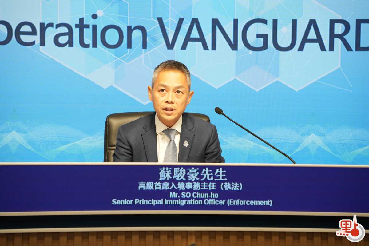蘇駿豪介紹指,入境處一直與內地執法部門緊密聯繫,採取「情報主導」方式,打擊跨境出入境罪行,特別是涉及偽造證件和集團式運作的犯罪團夥。今年7至8月,在國家出入境管理局統籌下,入境處連同廣西、廣東公安出入境管理部門及深圳邊檢機關展開聯合行動,成功瓦解一個跨境偽證集團,整個行動中兩地共拘捕201人,檢獲大量製證設備和偽造證件。在香港代號「領鋒」的行動中,共拘捕97人,包括跨境集團在香港的主謀和骨幹成員。