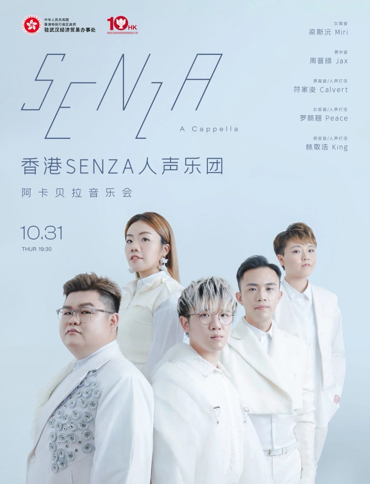 【點新聞報道】今年是香港特別行政區政府駐武漢經濟貿易辦事處成立十周年。今日(31日),駐武漢辦邀請香港最具人氣無伴奏人聲合唱團之一—SENZA人聲樂團首次前往武漢,呈獻由團隊成員精心改編的華語港台流行經典及原創曲目,用無伴奏合唱「聲」入人心,為內地觀眾帶來一場精彩紛呈的音樂體驗。