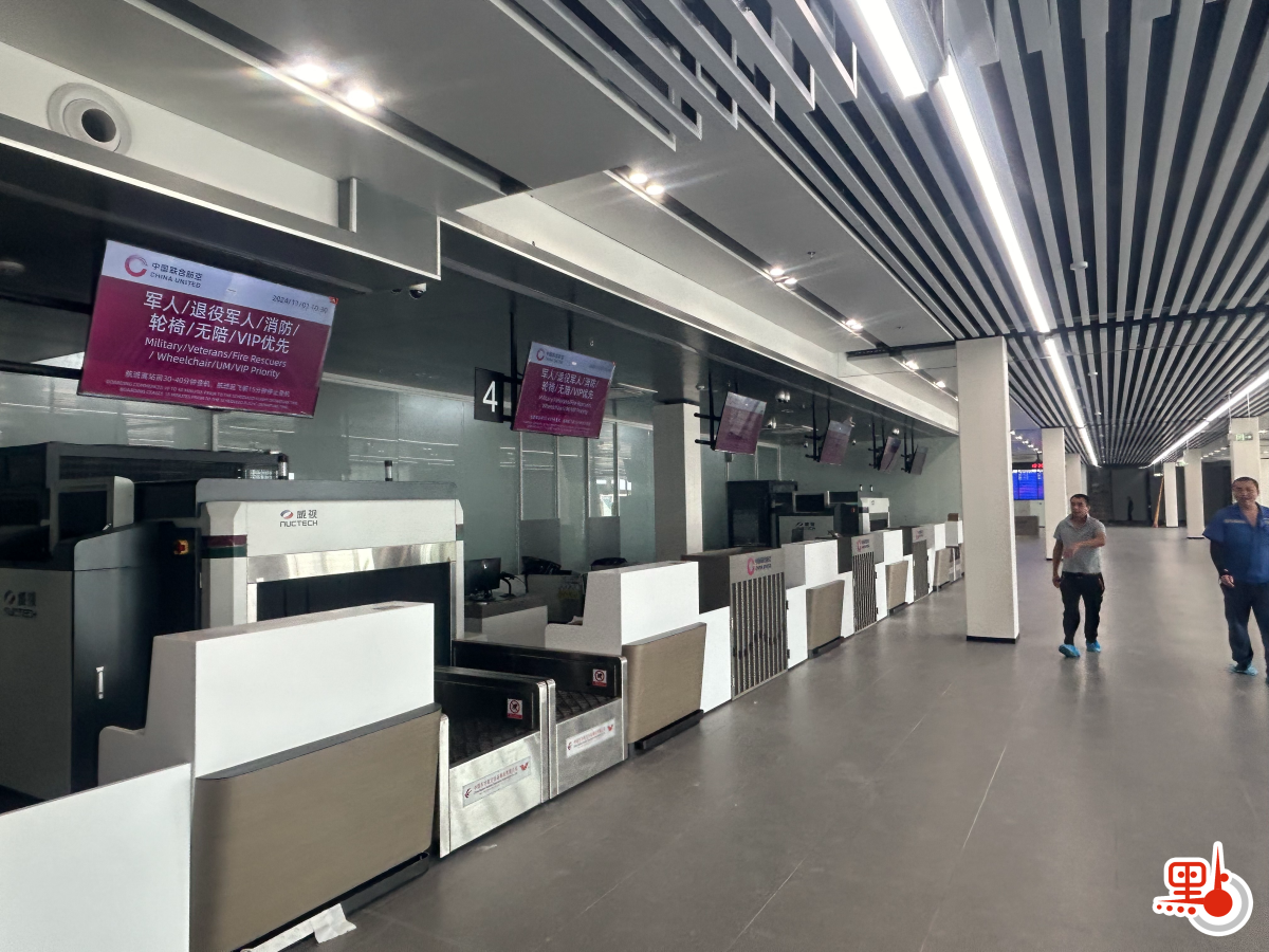 新航站樓是原有航站樓面積的三倍,但相比白雲機場超過150萬平方米的巨型航站樓,依然顯得小巧。進入航站樓後,30米即可抵達自助值機台,步行至安檢口也僅需10餘秒。點新聞記者現場體驗發現,從航站樓的任何一個位置前往值機台、衞生間、母嬰室、候機室,均可在30秒內抵達,十分快捷。
