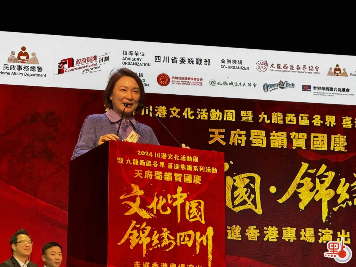 九龍西區各界協會會長樊敏華在致辭中表示,演出不僅展示了四川非物質文化遺產的魅力,也加深了川港兩地人民的情感聯繫。這些創意十足的文化交流活動,為工商界提供了交流合作的平台,推動了兩地在多個領域的具體合作。他還提到,今年初,九龍西區各界協會率先提出舉辦以熊貓和川港非遺文化為主題的系列活動。這些活動分為三個階段,分別在9月、10月和11月走進香港不同地區,全方位展現四川的文化形象,為香港發展熊貓經濟注入新動力。