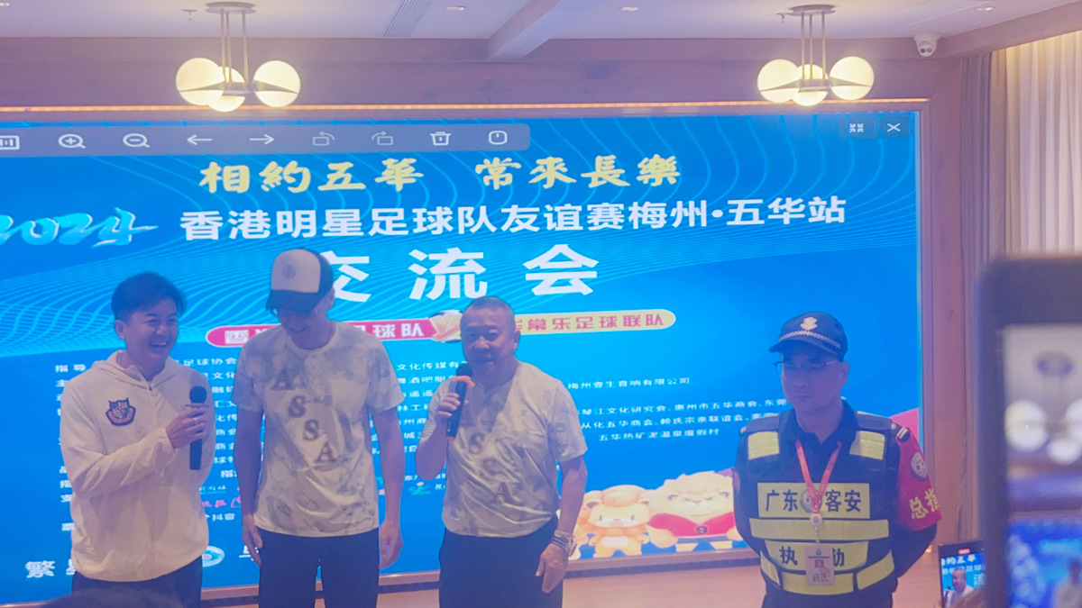 「提到五華,大家一定會想到李惠堂先生。如今這裏有濃厚的足球文化,有一支出色的足球隊。今次除了來這裏以球會友,還會參加以李惠堂先生為主題的電影《一生何球》的記者招待會,這是雙重盛事、喜事。」曾志偉說。