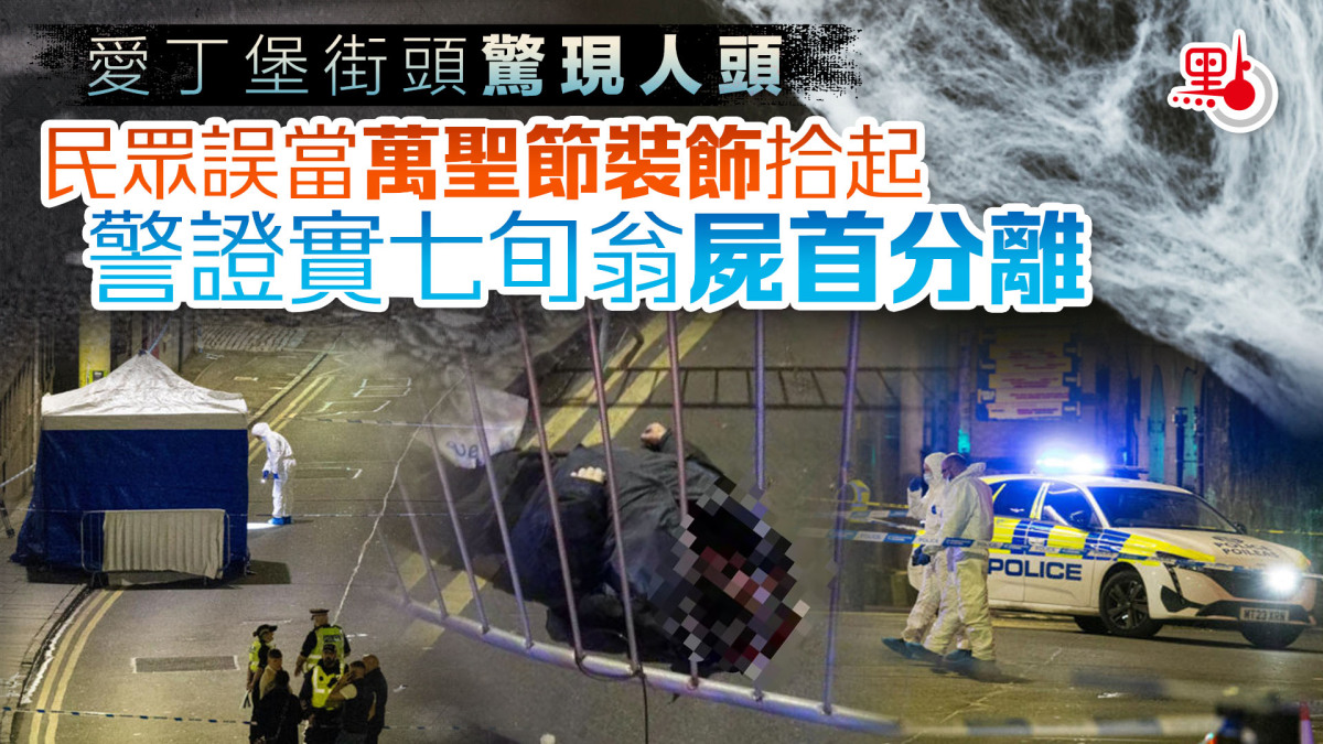 【點新聞報道】英國的愛丁堡(Edinburgh)發生一宗駭人交通意外。據外媒報道,當地時間11月2日晚上,有民眾在愛丁堡街頭旁發現一個人頭,因萬聖節剛剛過去,民眾誤以為是萬聖節道具隨手拾起,大驚發現原來是真人頭顱。當地警方其後證實現場曾發生交通意外,一名74歲老翁在涉事地點慘被車撞,或輾至甩頭致屍首分離,死狀恐怖,惟目前仍未有案件詳情清晰交代。當地有傳媒形容事件為「愛丁堡噩夢」。