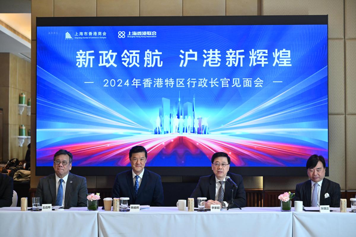 李家超亦感謝上海市委、市政府多年來高度重視滬港合作。他指,滬港兩地交往頻繁,在經貿、金融、創新科技,以至教育、文化及青年交流等各方面一直保持深度合作和緊密聯繫。今年是滬港通推出十周年,滬港合作會議第六次會議亦於今年四月舉行,體現滬港合作再次邁上新台階。他有信心兩地繼續優勢互補,合作共贏,在多領域推動協同發展,共同貢獻國家高質量發展。