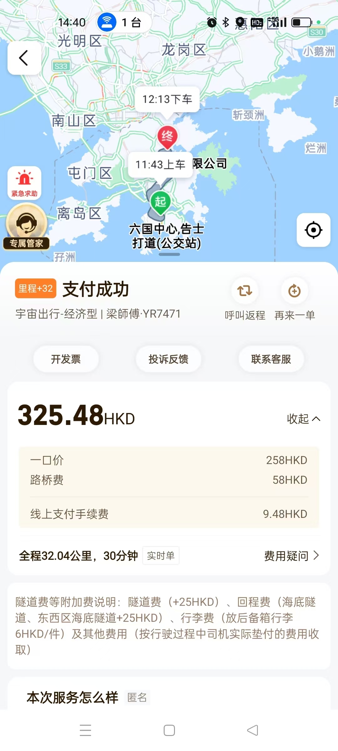 此前曾有內地乘客在社交平台發文稱讚香港的士司機會幫忙搬行李,家住龍華的陳女士也遇到過同樣友好的香港司機,她告訴記者,自己是從六國中心線上叫車到大埔,接單的是「宇宙出行」的司機梁師傅,對方看到她像是內地人就主動用普通話交流,還會幫忙解答疑問,甚至熱心的提供路線,幫助她下車後順利到達目的地,這讓她增加了對香港的士司機的好感度。